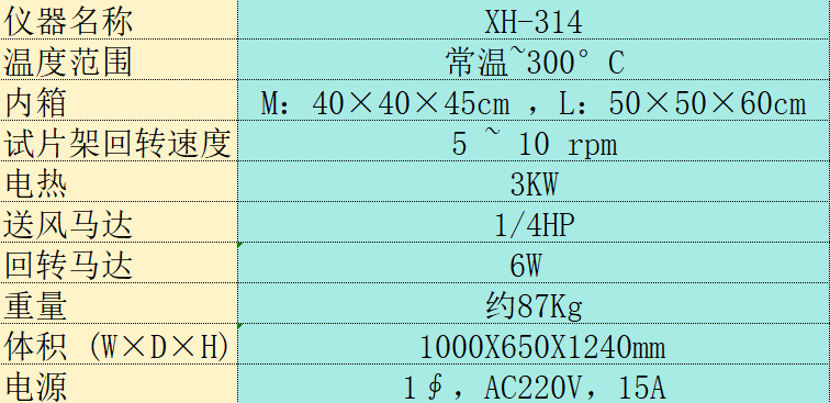 原理:利用可控制的加熱系統,使空氣由外部藉鼓風(fēng)機吸入后得以加熱成熱空氣,并藉由通風(fēng)管將熱空氣散布于工作室中,將利用過(guò)的熱空氣由儀器上方的出氣孔排出,以達到空氣循環(huán)的目的,進(jìn)而促進(jìn)試樣(試片)在熱空氣循環(huán)狀況下在一定時(shí)間后達到老化的目的(試樣物性衰退或變色等現象)。